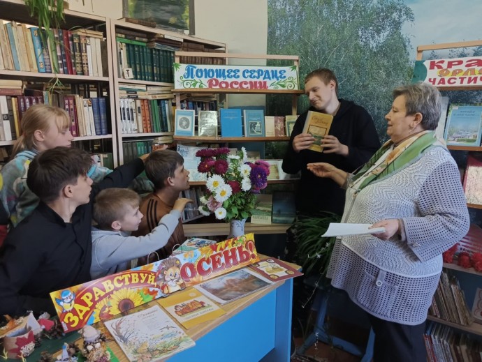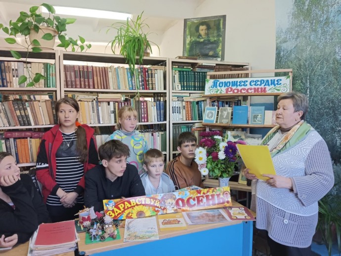 Заведующая Голунской сельской библиотекой Г.Н. Лихарева провела для обучающихся МБОУ Голунская СОШ час поэзии «Поющее сердце России».