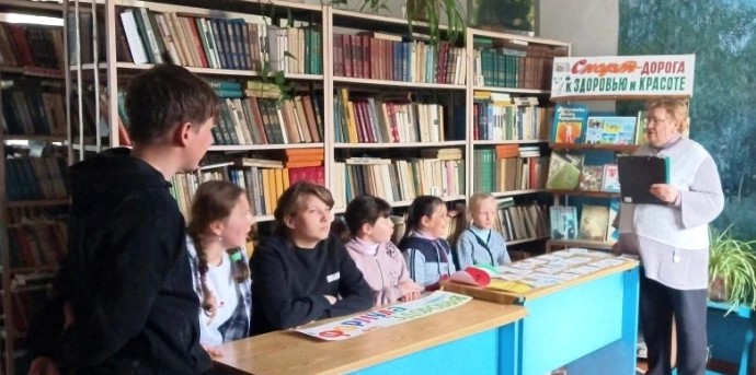 Заведующая Голунской сельской библиотекой Лихарева Г.Н. совместно с Советником директора по воспитанию Голунской СОШ Масловой С.В. организовали урок «Формула здоровья».