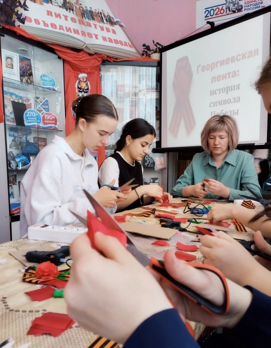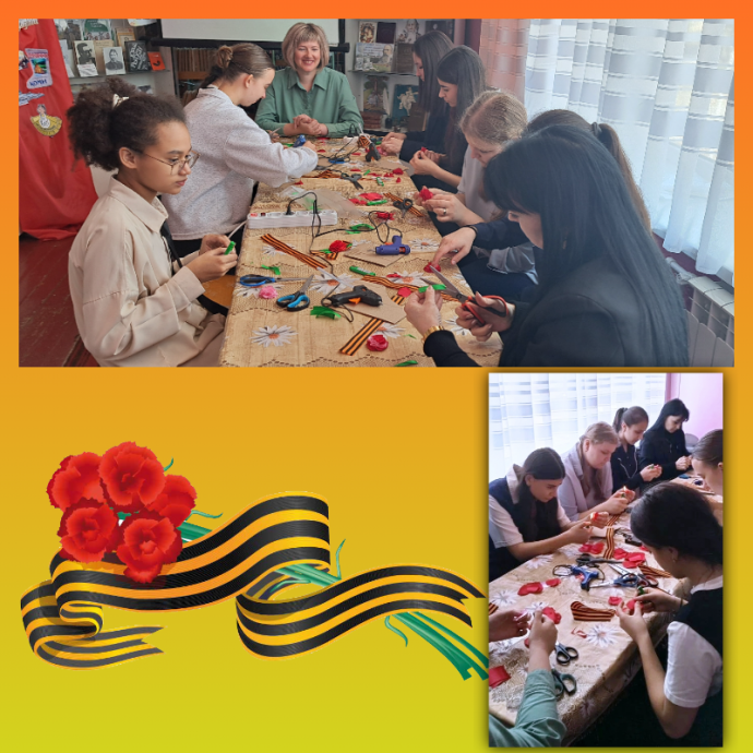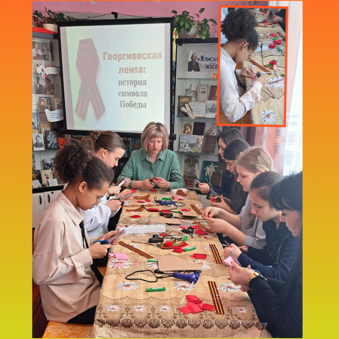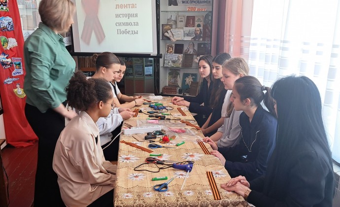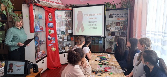 Новосильская центральная библиотека пригласила учениц 9 «А» класса с классным руководителем Перстневой А.А. на историко-просветительское занятие «Георгиевская лента: история символа Победы», где они занялись не только творчеством и создали своими руками символ памяти и благодарности, а прикоснулись к важной части истории нашей страны.
