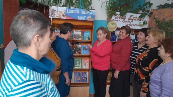 Специалисты библиотеки рассказали о событиях, послужившими причиной рождения праздника Народного Единства, о знаменательных страницах истории Родины, о людях, которые её создавали и отстояли в грозный час. В ходе мероприятия пожилые люди узнали, что история России учит нас, что порознь, поодиночке не сделать того, что можно сделать вместе. Каждый запомнил, что сильна Россия только тогда, когда она едина. Именно поэтому в нашей стране есть такой важный праздник – День народного единства. В конце встречи участники ответили на вопросы викторины, отгадали загадки, вспомнили пословицы и поговорки о Родине, о дружбе.