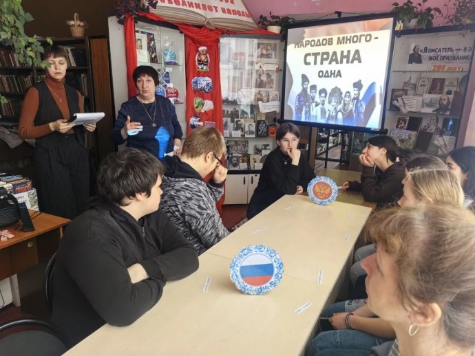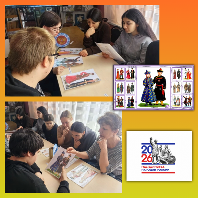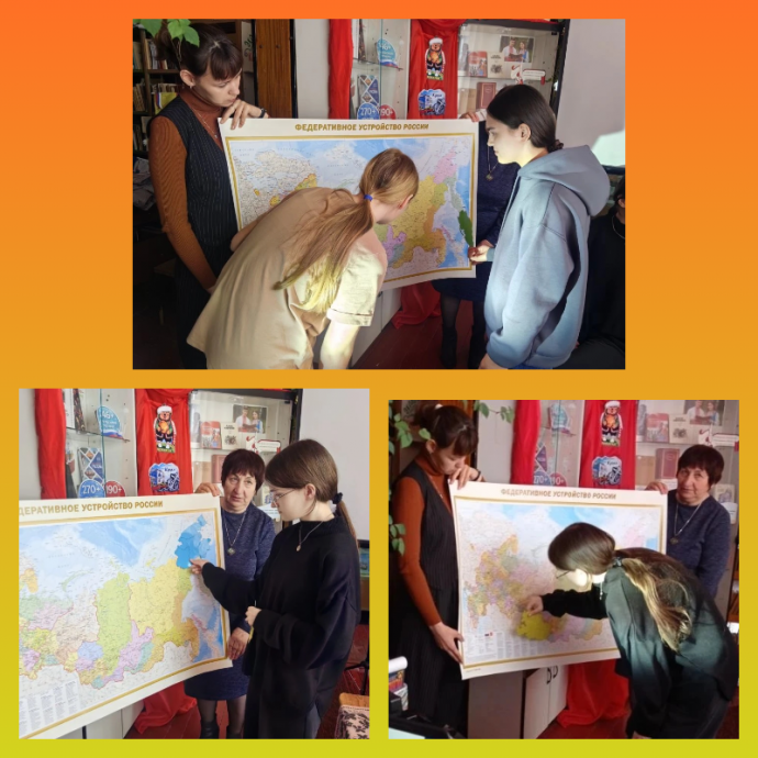 Библиотекари предложили им принять участие в интересных и познавательных конкурсах и викторинах. Студенты узнали, как живут люди в разных уголках России, познакомились с их историей, культурой, традициями, услышали волшебные легенды. Познакомились с обычаями разных народов России приветствовать друг друга, узнали, что национальный костюм отражает индивидуальность народа, нации и характеризует её культуру, является предметом национальной гордости и попробовали определить национальность на предложенных изображениях. Отправились в путешествие вместе с нашим «туроператором», но сначала из «рекламного проспекта» отгадывали, куда же собственно они отправятся. А отправились они на Чукотку и в Удмуртию! Находили их на карте России, составляли логическую цепочку из слов, вызывающих ассоциации с этими регионами, смотрели красочные видеоклипы.